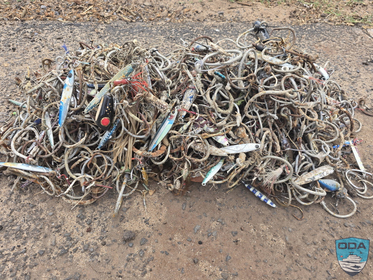ODA has been working with Lloyd Johnson and his merry band of Maui divers for a little over 3 years now. I’ve been astounded by the amount of lead fishing weights, lines, and hooks they remove on a regular basis.