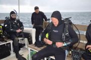 When we got to the site, the clouds had broken slightly over the sea, but not over land, as we could see a solid bank of clouds all along the coastline. Thankfully, the seas were not rough.