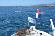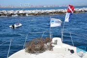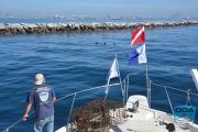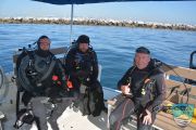 As we headed out of the mouth of the harbor, the seas were absolutely flat. Great conditions that allowed us to maneuver the boats really close to the wall. This breakwall is about seven miles long, so I dropped the divers off in the general vicinity of where we had ended the removal dives two weeks ago. Then they dropped down, with our underwater scooters, and headed east.