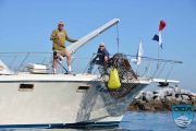 We repeated the same scenario as the first dive, and at the end of their 45-minute dive we had another trap, three more anchors, and about 200 feet of fishing lines all safely aboard.