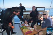 After that 50-minute dive, they climbed back aboard to have some food and drinks while they prepared for the second dive.