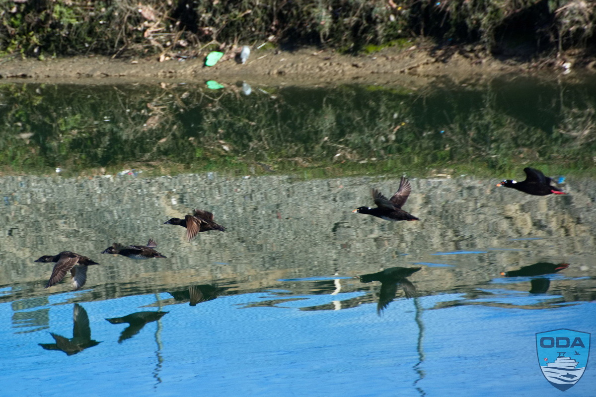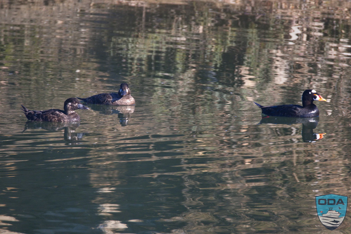 Northern shovelers were there too, fattening up as they prepare to migrate north to Canada. Surf scooters and lesser scaups were scattered hither and yon.