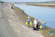 Because not too long ago we had been at this site, the area looked pretty clean, but the further we walked we kept finding areas with loads of plastic. This section of the channel is about 1.5 miles long; we were stretched out along almost the entire length.