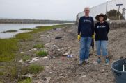 So, we shifted gears and went looking for plastic debris. We found hundreds of pounds of it in a place called the Bolsa Chica Channel. This is a man-made water diversion channel that runs along the border to the Seal Beach National Wildlife Refuge. We've been there several times in the last few months, but this time we were further "up the creek."