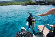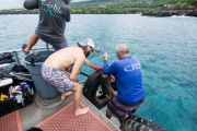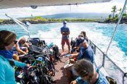 Because of all the human activity, we thought this would be a good candidate for an ODA cleanup. With that in mind, two days before the event I went for a recreational dive with Jack’s Diving Locker (JDL). Keller Laros was the dive guide for the day, and he directed the boat captain to take us to Keauhou Bay to scout the site for debris that we would then remove the day of our ODA cleanup event.