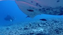 When we got there, we could see two mantas, and they were kind of hanging out in the same spot, moving slowly in circles. This was the cleaning station Keller told us about! You can see a couple of the fish hovering off the side of the manta, doing their cleaning service!