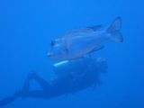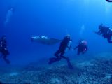 There were three dive guides, and they broke us up into small groups with each guide taking four or five people on an underwater tour of the area. Each group headed in different directions. As my group was meandering around, we saw a large shape about 100 feet away, and we naturally headed in that direction.