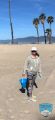 The picture I'm sharing to the left is not of her in our neighborhood, but rather, she was on a trip visiting Santa Monica, California. Sure enough, she found time to clean their beach!