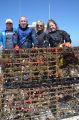 Geoff has outstanding diving skills, but his contributions go way beyond locating and removing abandoned traps. He’s very creative at coming up with solutions to our ever-evolving situations that come with the physical challenges of hauling these traps out of the water. If he sees something that can be improved, he builds whatever device that is necessary to make our recoveries more efficient and safer. For instance, getting a trap attached to a lift line that gets attached to the end of the davit line might sound like a no-brainer, but it can (and does) get crazy out there with wind, waves, and currents making this phase of the haul out a big challenge. Doing it on land is one thing, but in a turbulent sea? It can get crazy.