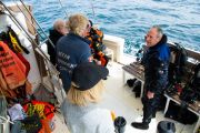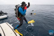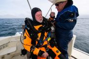 Geoff: I started as a volunteer diver with ODA, and after talking about our outings and what we are accomplishing, she decided to join us. She won't dive in cold water, but likes being out on the water, helping out with boat operations, and loves driving the RIB to retrieve traps we divers send to the surface. We'll talk about the experience and work together to come up with better solutions to make ODA's on water operations more efficient, such as the lines we came up with to tow traps back to the boat, to be lifted up with the davit.