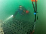 Geoff: They're all good, some are just better than others. The best ones are when we have a successful outing and come back with lots of abandoned traps. Or find a buried abandoned trap with dozens of lobsters and have to go back to cut the top off and free them all. Or visiting wrecks looking for abandoned traps, because I love wreck diving. The downside of a successful expedition is we have a lot of abandoned traps to pull off the boat, and a lot more to clean up, so it makes for a long day. But days where we pull out a trap and save a dozen or more lobsters are especially rewarding. Even near-zero visibility days are rewarding when I can find something and bring it out of the water.