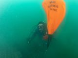Geoff: Besides boat diving for free? (laughter) We don't necessarily hit the garden spots recreational divers visit on local dive boats. There's a lot of satisfaction in the mission of getting traps out of the water. Abandoned traps do their job 24/7, trapping sea life, and eventually it dies because it can't escape unless we get it out of the water. The satisfaction of what we're doing, and the impact we're having, even if it's on a limited scale, is indescribable. Plus, it's fun, being out on the water with likeminded volunteers who care about the environment and are generally nice people to be around.