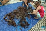 A: The top of my list as far as ODA expeditions (the list is very long as I appreciate and like each one) would have to be Deep Step. This was a site that Sarah Milisen, our Hawai’i Island Chapter Leader Sarah Milisen, has been talking about for some time and finally was able to arrange for a smaller, long-range boat to take us there! We created a group called the “ODA Elite Force” and set out to tackle this new to us site. We heard it was bad, full of fishing line and leads weights; when we descended underwater, no words could at all describe how bad this site was. It truly was like a large, wide waterfall of fishing line that extended down to the blue as far as you could see. Thick line, thin line, line with many hooks, lead weights, metal pieces, on and on and on it went. We spent an entire hour working one area and filling our bags, yet when it was time to come up after each dive, it looked as though we hadn't even been there or touched this site. Getting back onto the boat after both our dives and seeing the overwhelming amount of line and rubbish we pulled from the ocean made all of our hearts swell. This is why working with Ocean Defenders Alliance keeps my love for the ocean always rising.
