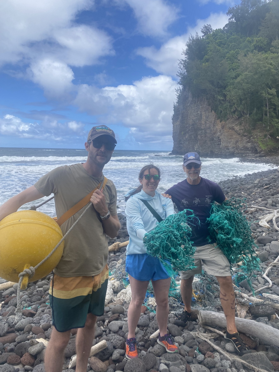 I guess our cleanups at Pololū Valley have brought some humorous moments. While it was a serious situation that there was SO MUCH abandoned fishing net on the beach, we do have fun as cleanup partners.