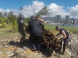 A: On the Big Island during a cleanup, we found a backpack with contraband inside. Also, inside the backpack was an ID card and after a simple Google search, we were able to determine that the suspected owner was a convicted felon who may have been trying to dispose of the contraband. The authorities were notified, and the bag was turned over to them. The owner had simply not disposed of the bag in water too deep for us to retrieve it!