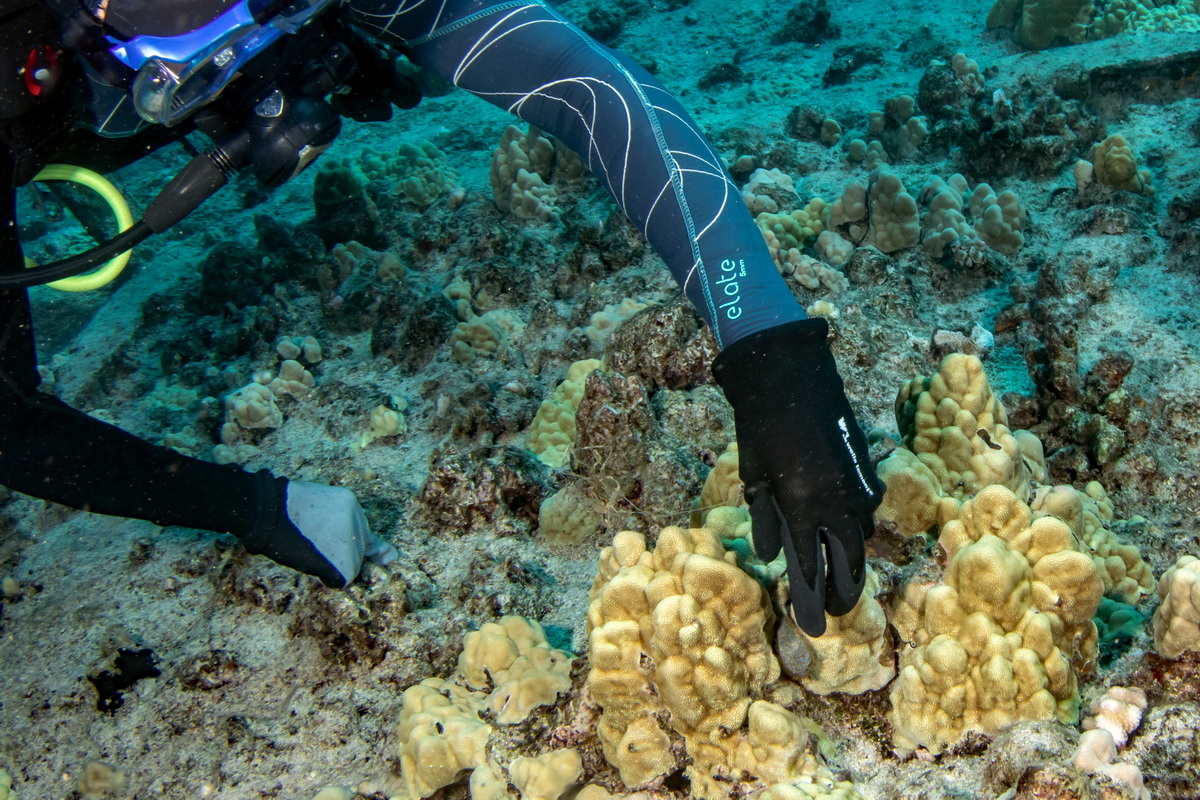 Our dedicated divers suited up and jumped in at our first site, the south side of NELHA, or Keahole Point. We all found the dive productive, as our boat hasn't been able to visit there in the last few months due to swirling and intense currents or heavy swell.