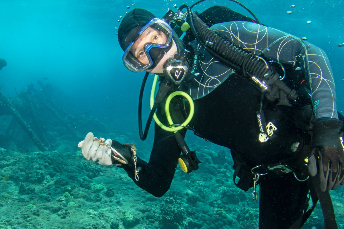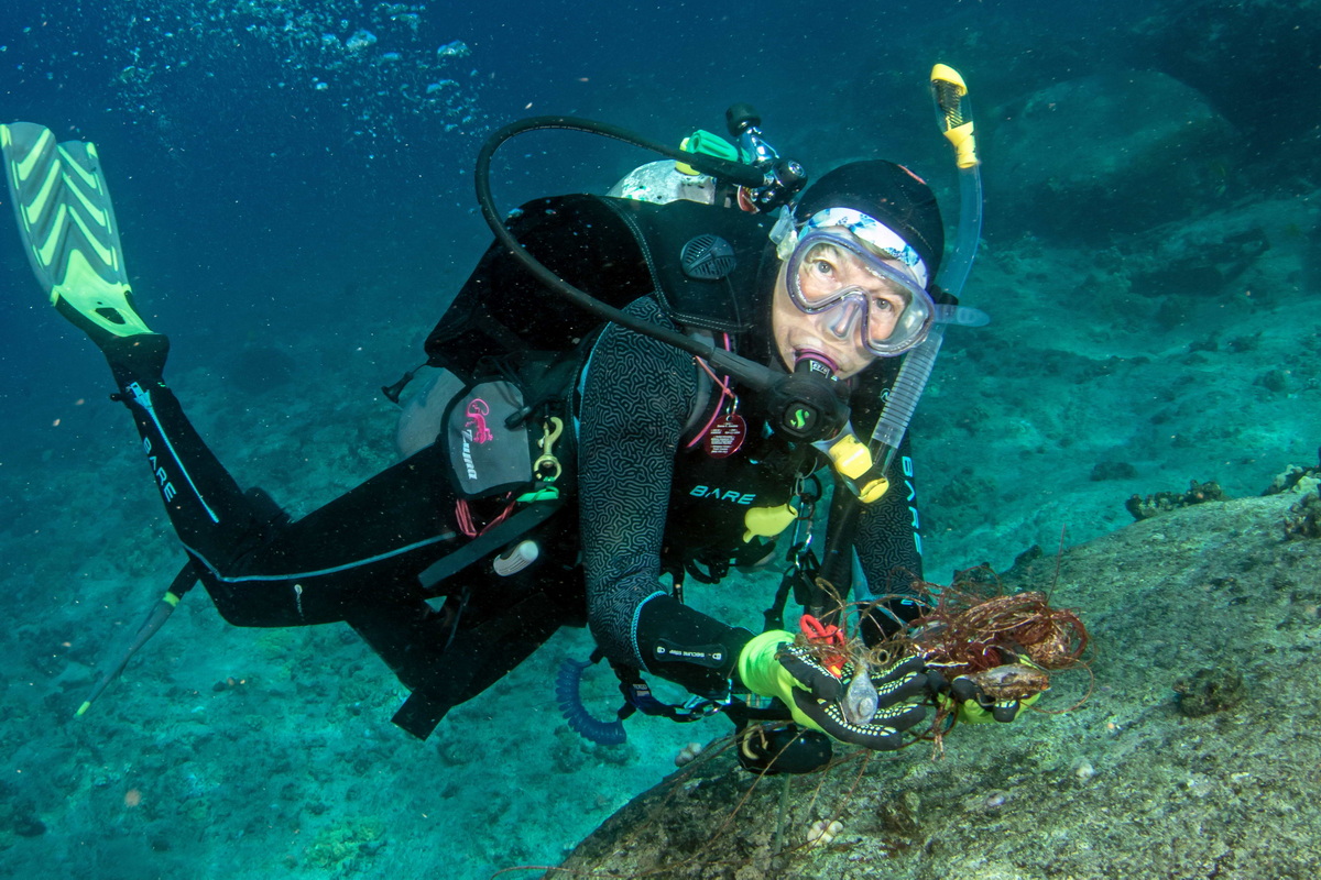Divers filled their bags with lots of lead, plenty of line, and many fishhooks, and lures. After an hour, we all came up, feeling accomplished and sharing our favorite finds of the dive.