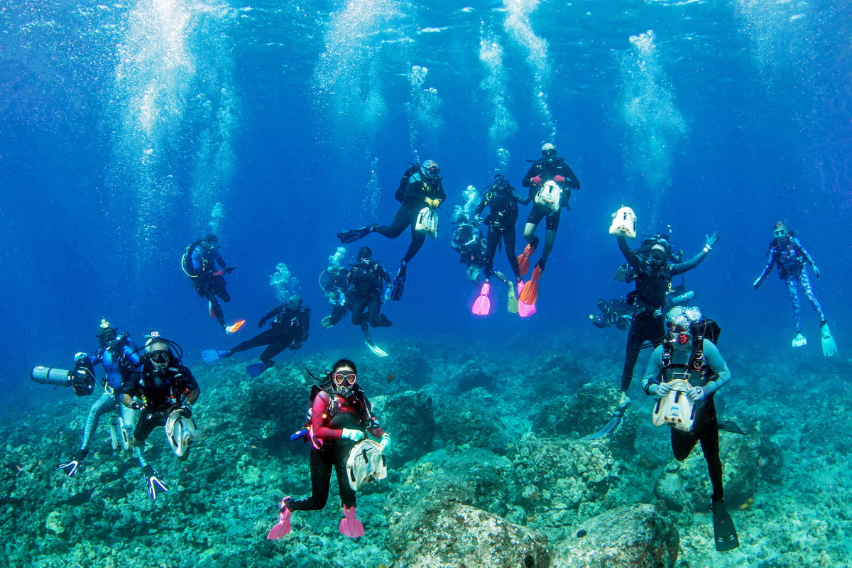 Divers completed their second 60-minute dive together, complete with group photo by our lovely and talented photographer Bo Pardau.