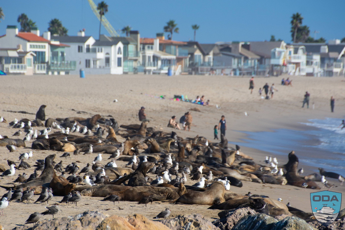 We headed out from Channel Islands Harbor at 9am, under very cloudy skies. Before we got outside the harbor, we spotted hundreds of sea lions huddled together, lounging on the sandy beach. That is not something we’ve seen before. Nice start to the day.