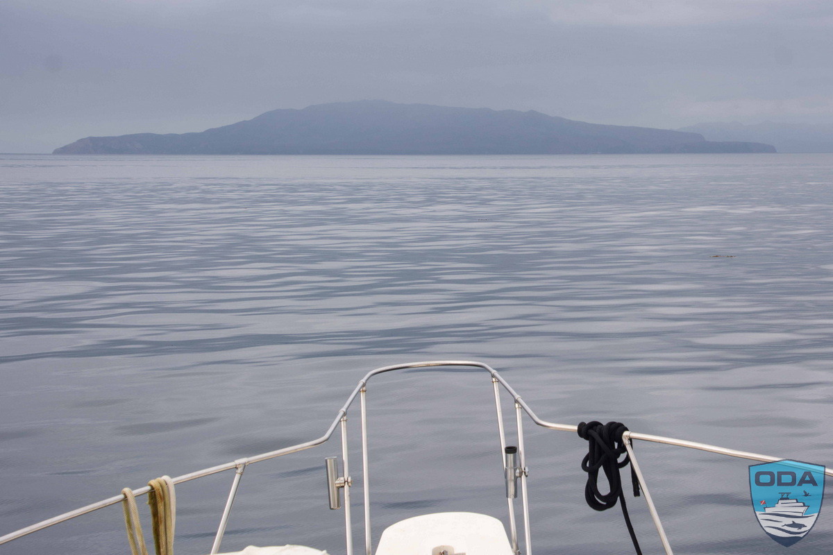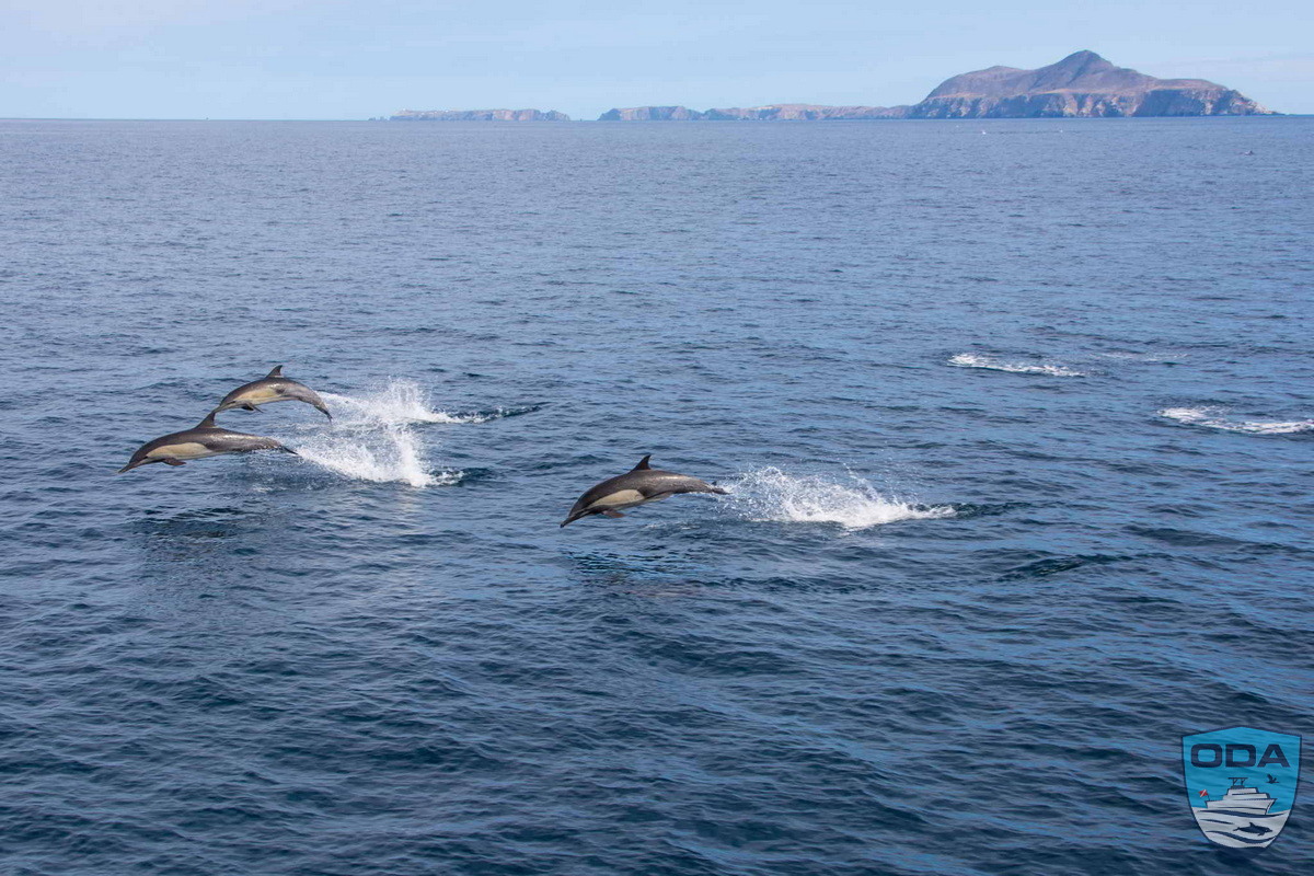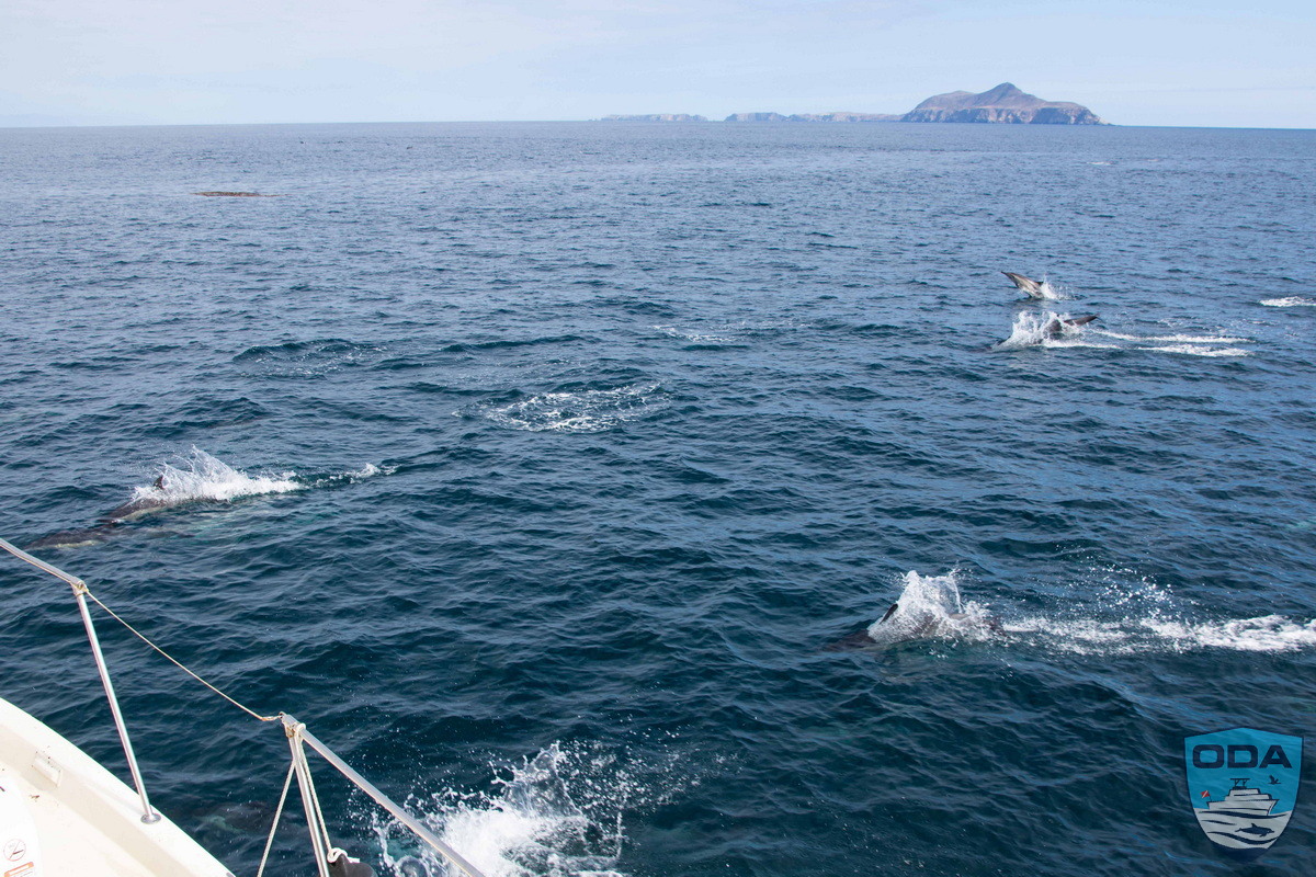 Once we rounded the breakwall, I opened up the throttle, and we headed west to Santa Cruz Island, one of the Channel Islands off the coast of Ventura County, California. The seas were really flat, and we motored along at 15 mph. Along the 18-mile trip we were treated to several sightings of large pods of dolphins. We diverted our path to take in the sight.