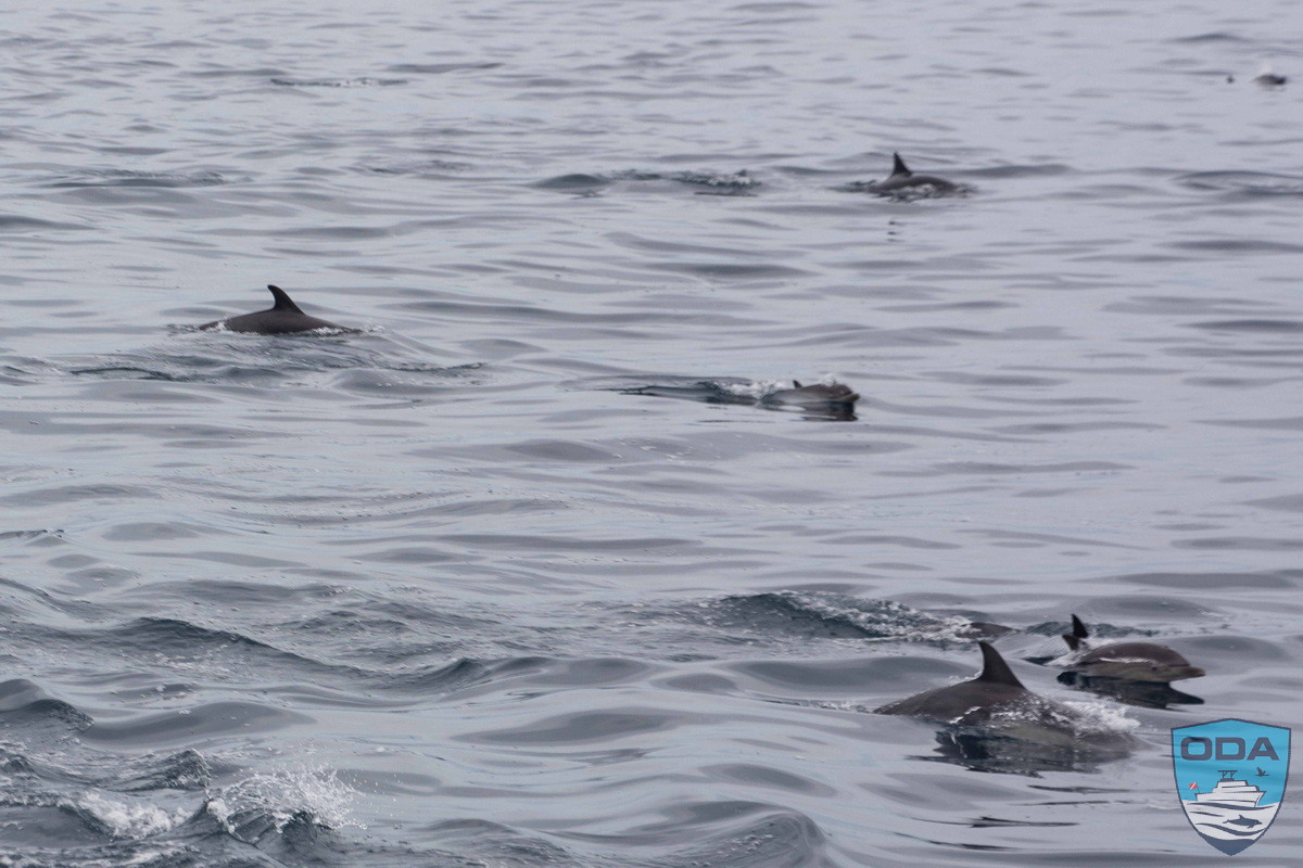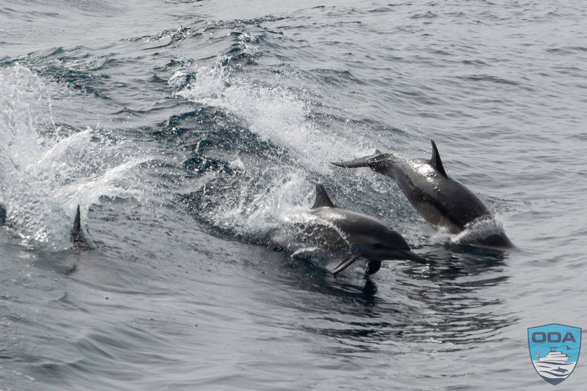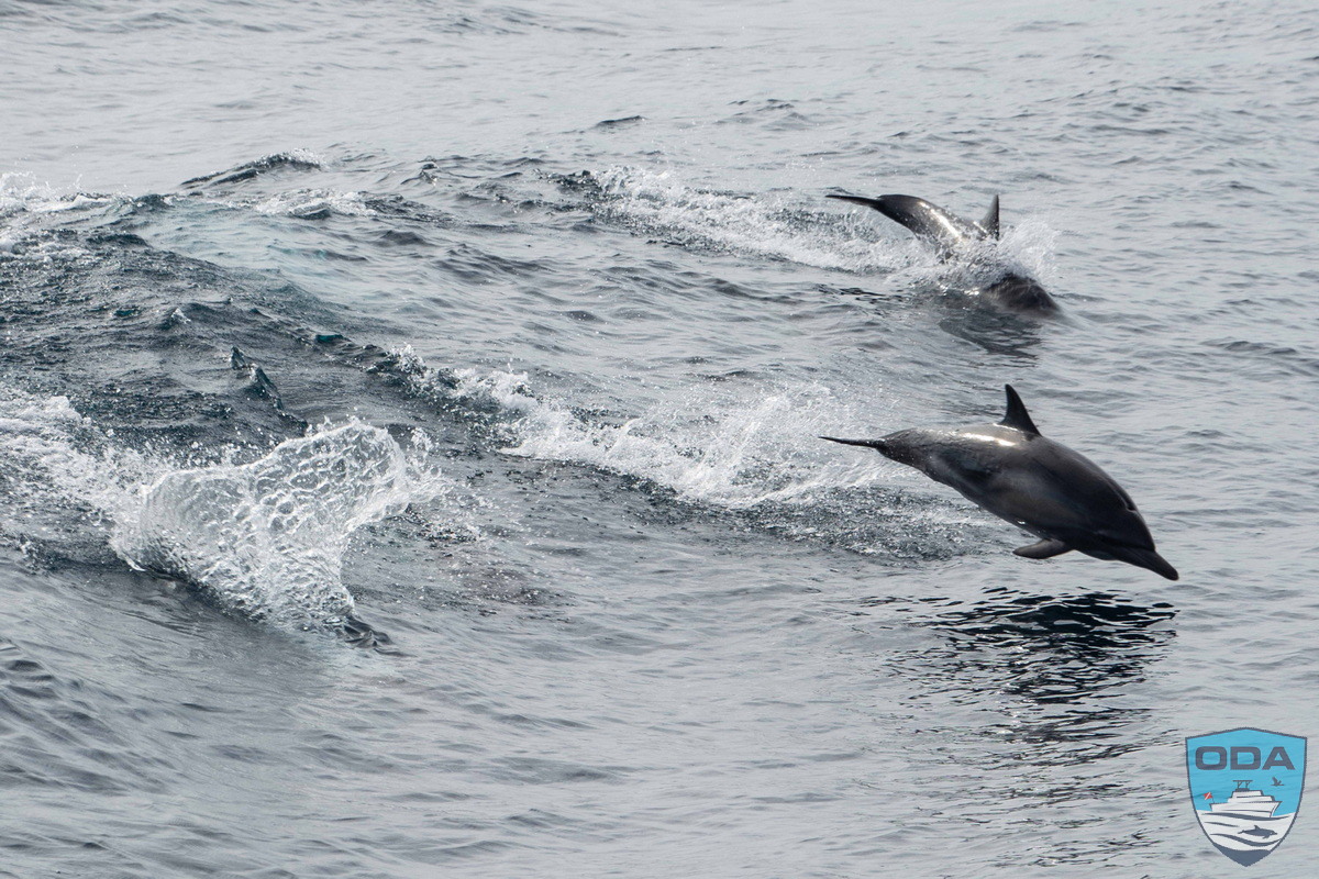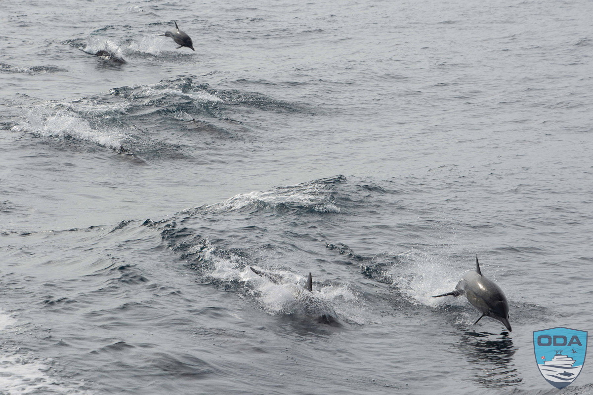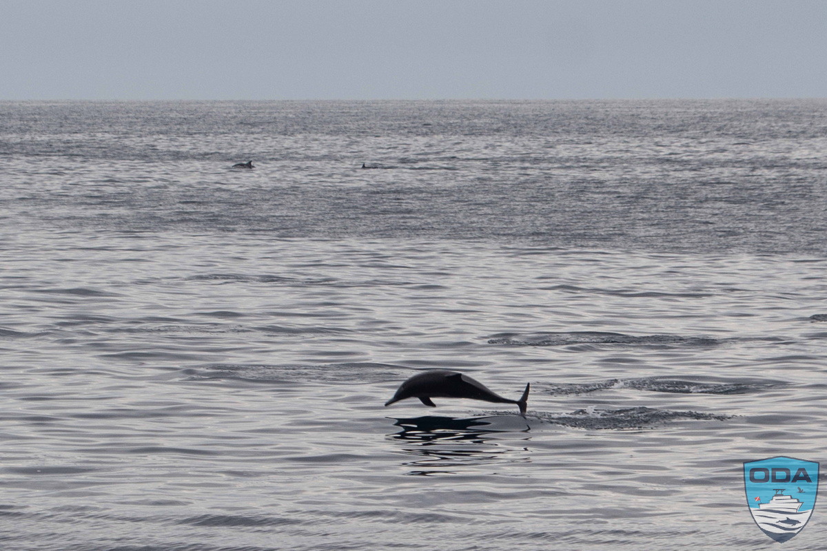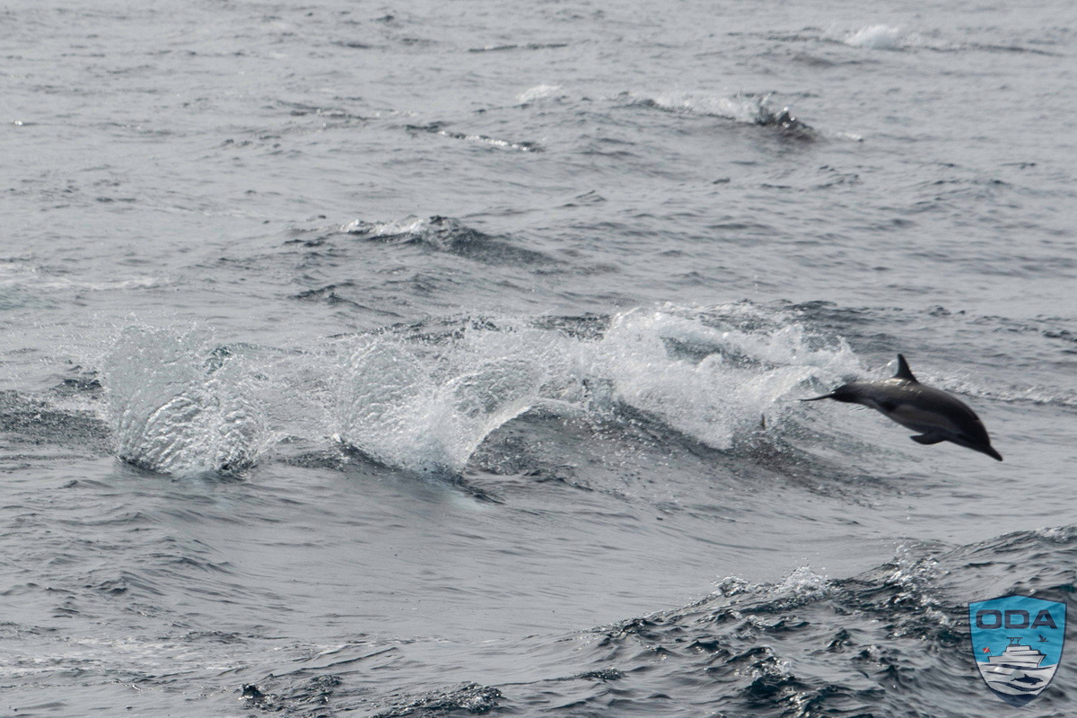 By this time, it was getting late, and we decided to head home. Along the return trip we encountered several more pods of dolphins. This time it felt like they were in play mode and joyfully rode our bow and were literally leaping out of the water in our wake. This lasted for at least 15 minutes.