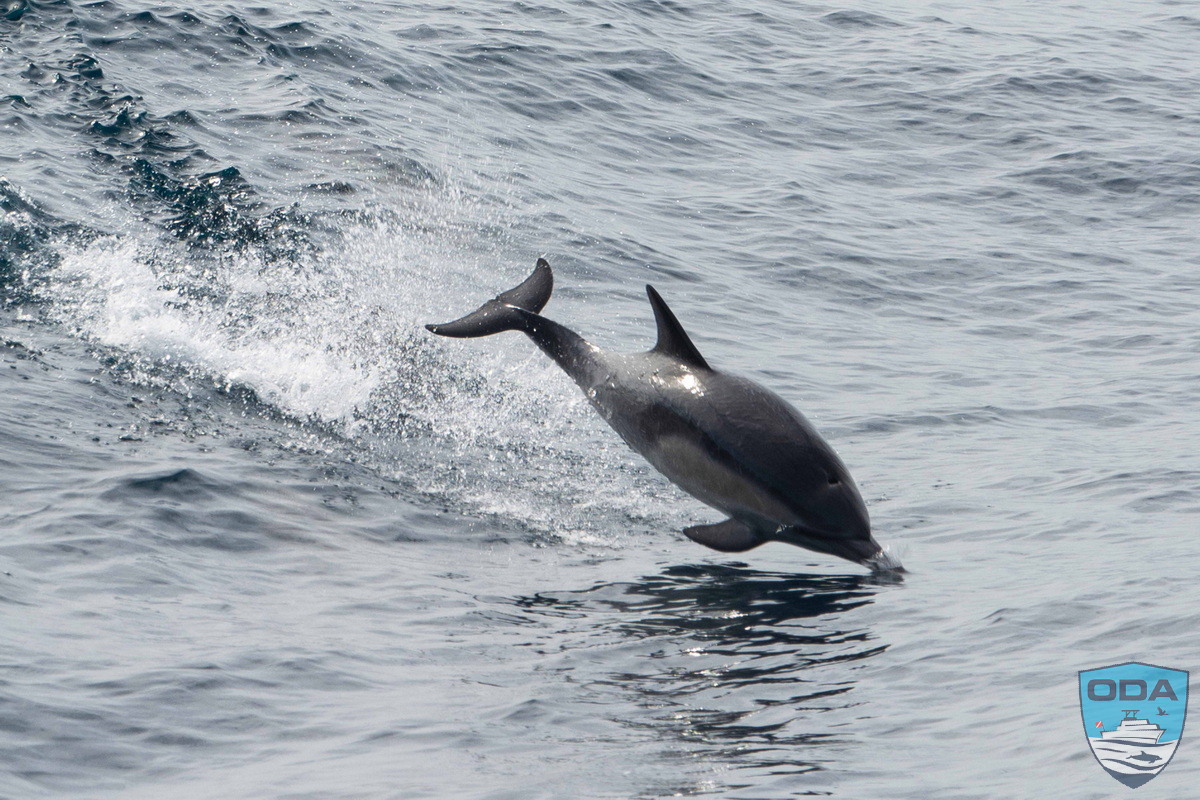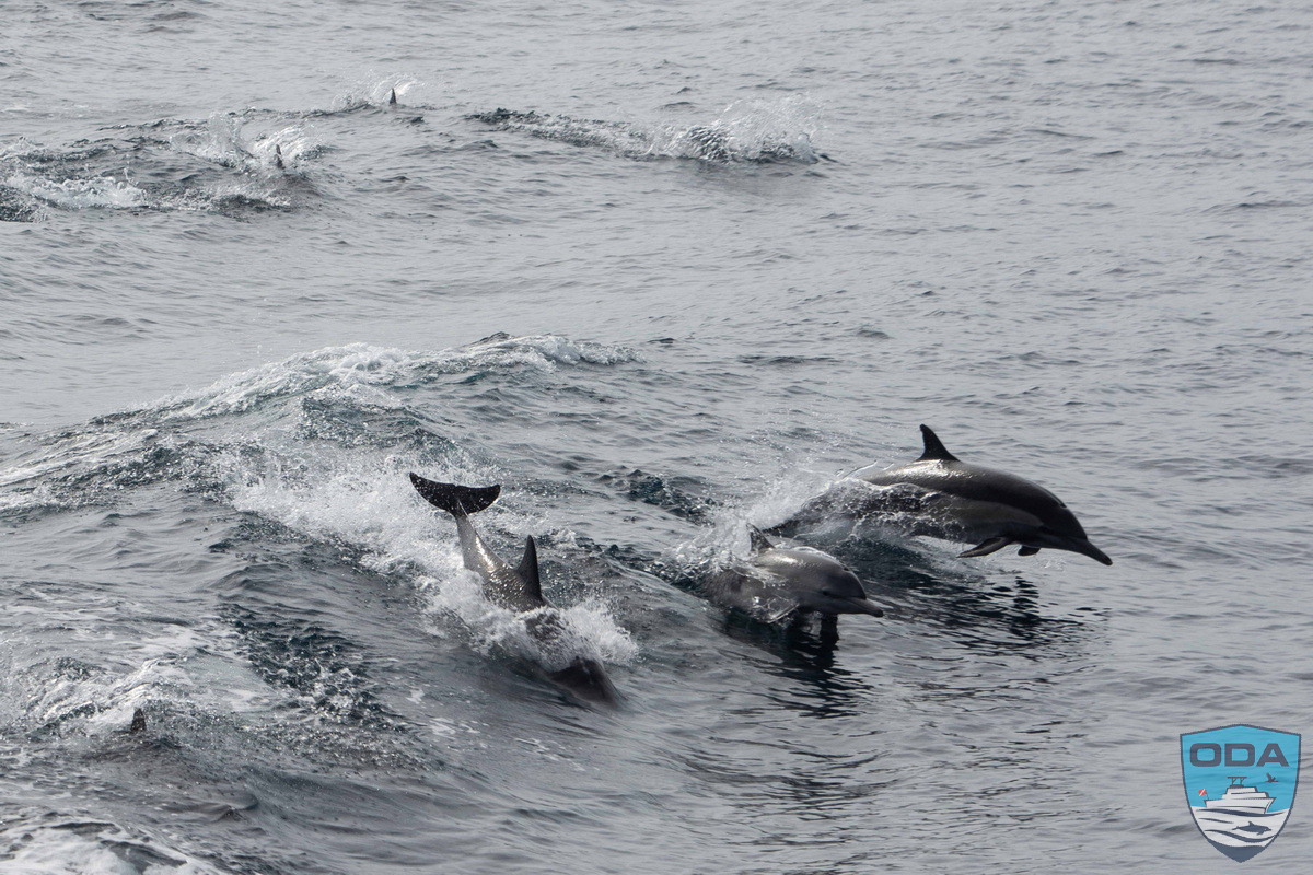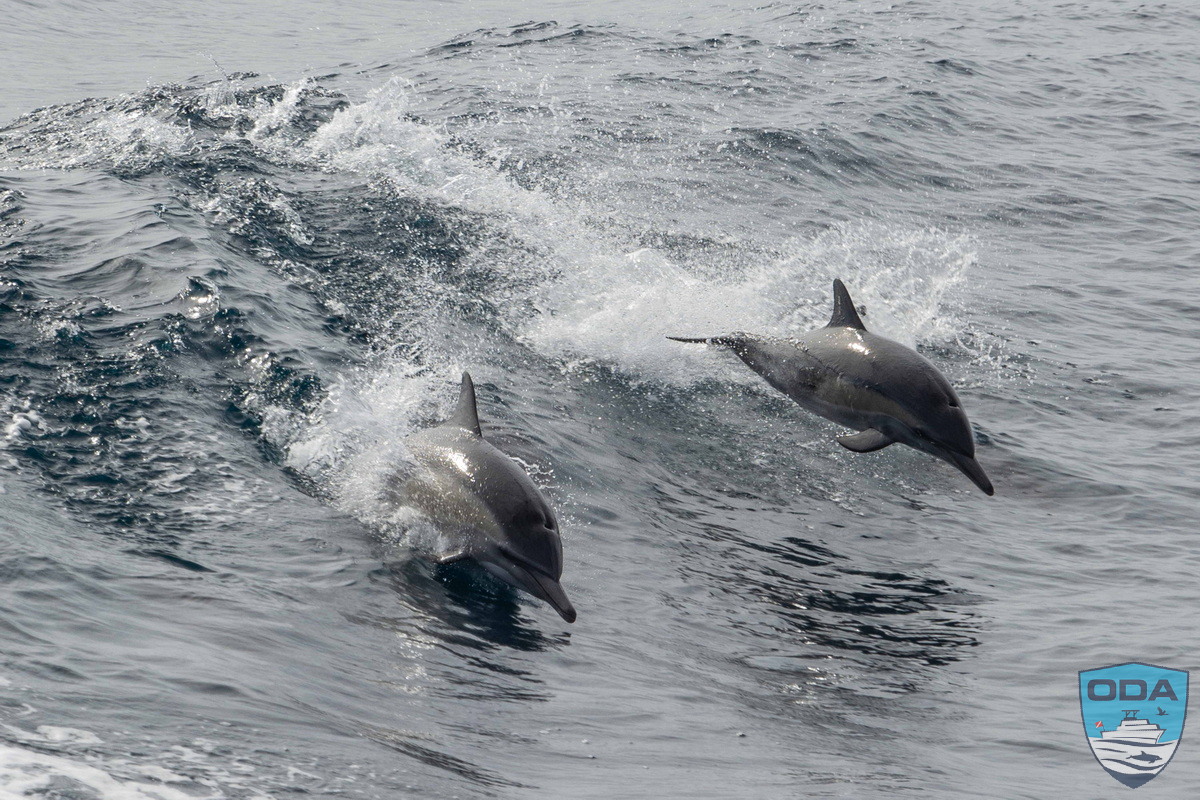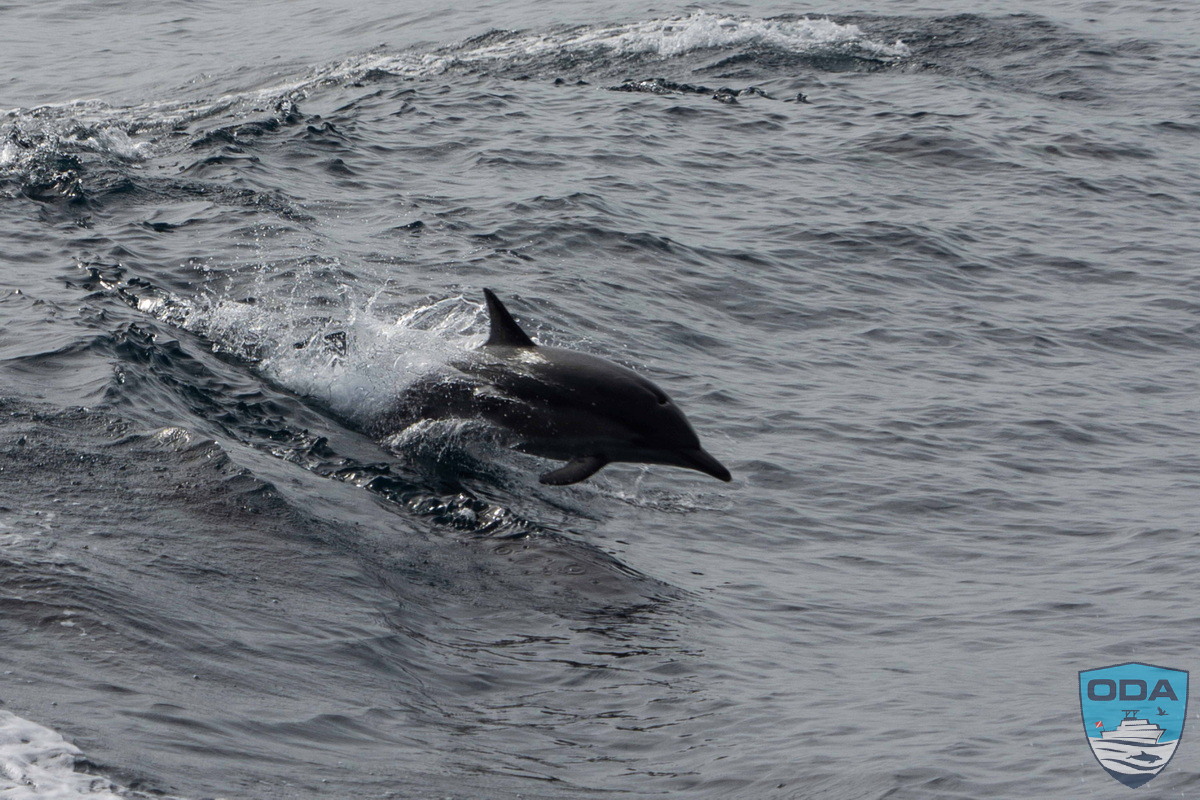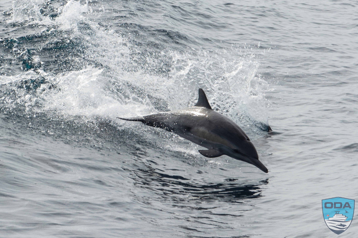 By this time, it was getting late, and we decided to head home. Along the return trip we encountered several more pods of dolphins. This time it felt like they were in play mode and joyfully rode our bow and were literally leaping out of the water in our wake. This lasted for at least 15 minutes.