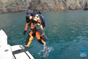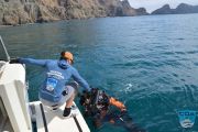 All divers jumped back in around 1 o'clock. Twenty minutes later we saw 2 lift bags pop up, this time about 125 yards away… oh boy that was going to take them awhile to haul it back to us. Indeed, it did, at least 15 minutes.