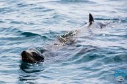 The day was really overcast, but the seas were pretty flat when we started out for the 16-mile trip. We didn’t see much wildlife on our way over, but once we got within a mile or so of the intended dive site, we started seeing lots of birds, most notably surf scoters. Hundreds of them. They are a migratory bird and were fattening up for their long haul up to Alaska.