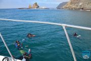 We sat around eating snacks while the divers warmed up and we discussed options for a second dive. Because the vis was so bad we decided to move into deeper waters and moved the boat about 100 yards away.