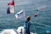 About 30 minutes went by and we still hadn’t seen a single lift bag at the surface. Then one popped up about 100 yards away. Excellent!
