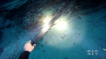 Luckily, the water wasn’t very deep, about 40 feet. So, they had some reasonable light and quickly could see the situation.