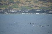 ODA has been partnering with Jack’s for the last eight months. We took their newly-painted boat, the Diver Two and headed north from the harbor about six miles to a spot that is frequented by manta rays. And wouldn’t you know it, we passed right by one lounging at the surface on our way there. Sorry to say, I didn’t even have my camera out and ready at this point, but I did get a few shots of dolphins later, so I’ll share them here! ;-)
