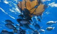 Several months ago, Captain Matt had taken note of a location where they had spotted a FAD (Fish Aggregating Device). FADs are used by fishermen to attract marine wildlife to the area and then catch all the fish they can that congregate in the shade beneath the device. The fish gather there because the shade gives the critters a chance to rest and cool down from the equatorial sun.