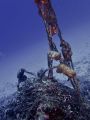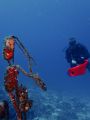 This net has been down there for several years and has become entangled with the corals. The team attached a lift bag to the shallow end of the net, put some air in it, and the bag promptly broke away from the net and rocketed to the surface. Matt and I were excited to see the bag come up, only to realize that nothing was attached to it…