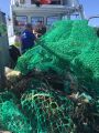 A couple helping hands put their snorkeling gear on and jumped in the water as the captain positioned the stern of the boat right next to the net. As they started examining the net to see if any critters were stuck in it, they saw dozens and dozens of frog fish in it. There were also crabs and dozens of juvenile filefish.