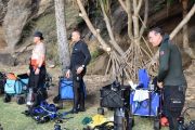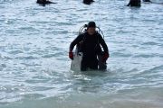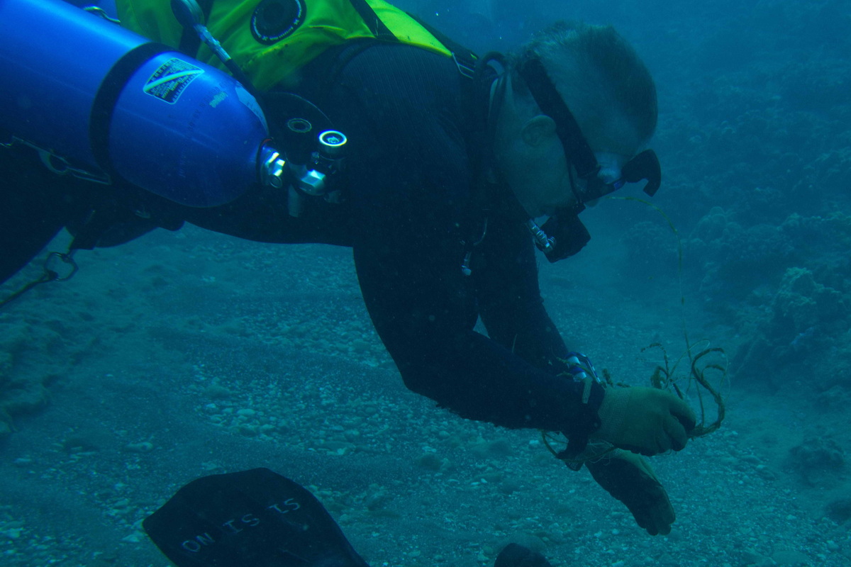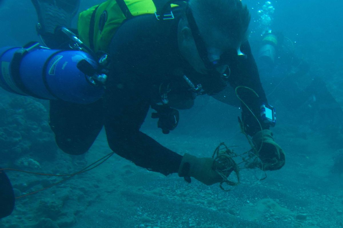 The rip currents required divers to maintain close buddy contact, anchor themselves carefully while cutting, and use deliberate finning to hold position. Occasional jellyfish made the work even more interesting—forcing a few strategic detours and slow, cautious maneuvering. Despite these factors, the team maintained excellent situational awareness and communication throughout the dive.