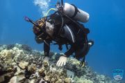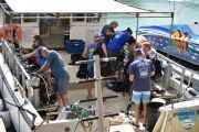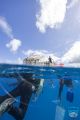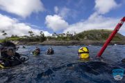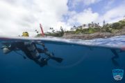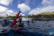 Our dive boat partner Island Divers Hawaii's Captain Matt positioned the boat Sea Fox to drop us divers at a new spot directly below where people frequently position themselves for recreational fishing.