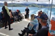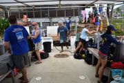 As we surfaced, I realized that once again the conditions had changed on us. It was a bit of a chore pulling the Dive Propulsion Vehicles and heavy buckets with their cumbersome lift bags on to the boat but as usual, we got the job done thanks to our volunteers!