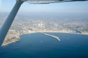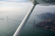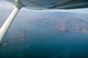We met up with Pilot Ken at a public airport in Marina, California, which is north of Monterey Bay by about 20 miles. We took off under hazy skies because of all the firestorms that ravaged California, and in which, sadly, at least 85 people have died at last count. Because of the bad air visibility, we could only see about five miles. As we took off from the airport, we were flying at 1,500 feet as we made our way up the coast from Monterey Bay to our target location: Bodega Bay.