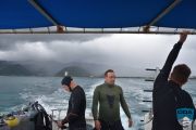 Meanwhile underwater, the divers were having a completely different experience. They later reported that conditions were a bit surgy but manageable, and the most remarkable part was the sound. The area was alive with whales, their calls echoing through the water while the divers worked the reef. Most of them had no idea the storm was raging above them.