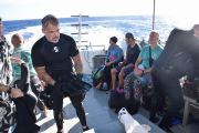 Divemaster David Marcelli rounded up the nine volunteers and brought them safely back to the boat while the remaining six volunteer divers lifted and moved the three buckets to the surface, in preparation for Captain Matt and the Sea Fox to pick us up.