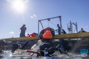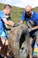 Now the tires were coming up one after the other, to the point that while the topside crew were hauling one tire out the divers had to wait in a line to get theirs hauled out.