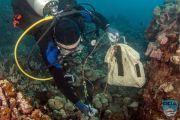Once we all started our safety stop (to decompress) between 15-20 feet deep, I deployed our delayed surface marker buoy and we all began to swim, under water, away from shore toward deeper water. This is important to do so the boat can pick us up farther from shore to avoid drifting too close to the rocks. Once our safety stop was completed, we all surfaced together and began to board the boat 2 divers at a time. We filled half of a large, black bucket in just one dive! Way to go! Since we didn't have long to work on this site on the first dive, we decided to stay here for the second dive and drop immediately over the rubbish, so we have longer to work.