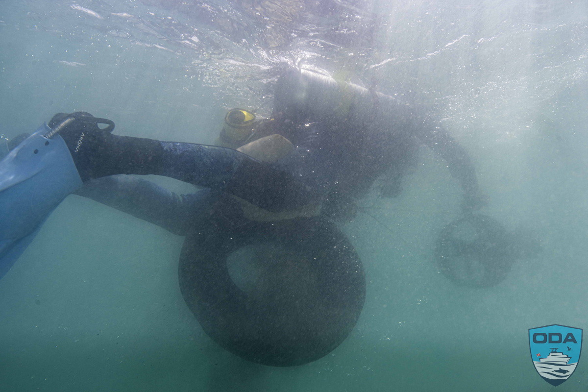 Immediately our shore/jetty cleaners got to work, and I was curious as to what we would find as our 12 eager divers entered the water! Our divers buddied up and made their way into the water underwater – they included: Michael Dal Pra, Chris Denton, Mark England, Ray Goodrich, photographer Crystal Gray, Ron Porter, Roney Rodrigues, Chad Schmidt, Ed Sisino, Kay Smullen, and Damaris Torre-Poliza. ODA Dive Team Coordinator Glenn Roberts led our scuba divers and provided the mandatory safety and operations briefing.