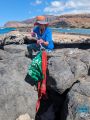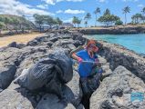 On land it was “divide and conquer”! Debra Kaawalauole-Townsend, Christine Pang, and Brian and Renae Pittman tackled the jetty and rocky area, while Terry Carwile walked the beach, filling his bucket with debris. Christine and Dan Fisher picked away at the park area.