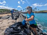 Onshore cleanup crew included: Terry Carwile, Christine and Dan Fisher, Debra Kaawalauole-Townsend, Christine Pang, Brian and Renae Pittman, and me (Marjorie Zensen). Thank you to Renae for photographing the land cleanup efforts!