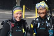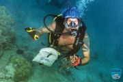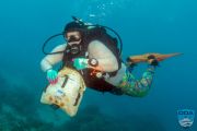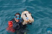 Topside volunteers got busy, filling our little ODA underwater bags 5-6 times with shoreline debris. Cups, cigarette butts, food packaging, cans, and the like all removed BEFORE it had its chance to blow from the land into the ocean! Hurray!