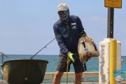 So, despite a looming Ironman, Ocean Defenders Alliance (ODA), along with our partners Body Glove, Jack's Diving Locker. and Kona Honu Divers all gathered our efforts for our twice-annual Kailua Pier cleanup on September 21. It usually coincides with International Coastal Cleanup Day in mid-September, and we get volunteers from all types of affiliations—the canoe club, swimmers that regularly swim the ironman course, passersby hoping to help, and of course, in true ODA fashion, lots and lots of our regular ocean cleanup divers.