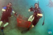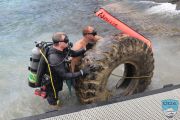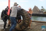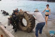 Years past were bicycles, shopping carts, massive tires, and everything else that might roll off the end in one way or another. A team of divers were deployed to haul in a huge tire at the end, using all available lift bags and rolling it up the ramp with several volunteers’ help.
