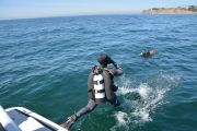I was joined by ODA volunteers Kim Cardenas, Jeff Connor, Lisa Davis, and Shani Tennyson. We headed for Cabrillo Beach to get Shani trained on how to operate a DPV (Diver Propulsion Vessel) otherwise known as a “underwater scooter.”